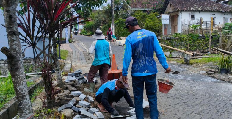 Perbaikan meliputi pembongkaran paving yang rusak, perataan tanah, serta pemasangan paving baru agar jalan lebih rapi, aman, dan nyaman dilalui warga maupun santri. Jalan desa tersebut memiliki peran penting sebagai jalur aktivitas harian masyarakat dan akses pendidikan pesantren.